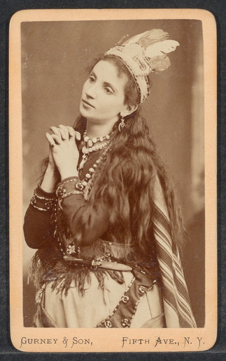 There are several pictures from that first season showing Giuseppina in costume as Dove Eye, described by critics as “the beautiful Indian maiden with an Italian accent and weakness for scouts." The following season, Morlacchi married her costar, Texas Jack, and agreed to rejoin his show, still with Buffalo Bill Cody but now having replaced Ned Buntline with the famous lawman and gunslinger Wild Bill Hickok. The plot of the play was similar, but names were changed, and the character of Dove Eye was replaced with Pale Dove. It is unknown if this image is from the first or second season. The costume matches images from the first season, but the name at the bottom indicates the character she played in the second.