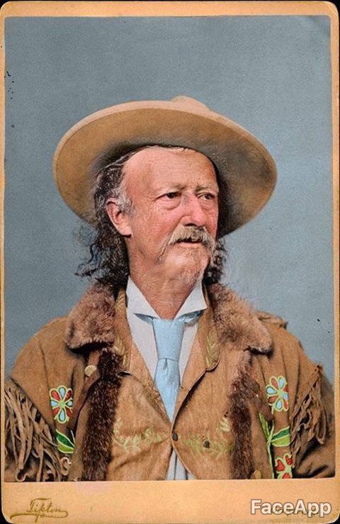 These AI routines are incredibly powerful...but not perfect. Take a look at poor Ned Buntline. The AI has done something wonky with the shadowing around his left eye. Also, look at Buffalo Bill's chin. The AI has interpreted the shadows and shading on the left side of his face as a beard while leaving his right cheek clean-shaven. The results are much better for Texas Jack and Giuseppina Morlacchi. The program used on these is called Remini, and is available as a downloadable app for iOS and Android devices. Another powerful AI imaging tool isn't for enhancement, but for color. DeOldify takes black and white images and tries to determine what color they might have been. Sounds like magic, and looks pretty magical in practice. Take my favorite image of Texas Jack and his wife, the Peerless Morlacchi: