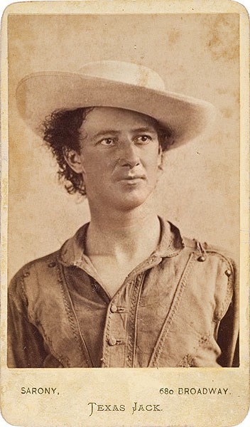 Images like this aren't important just because they show us what Texas Jack looked like, but because of the information we can glean from them. Based on the name and address of the photographer at the bottom, we can tell that this picture was most likely taken between June 12th and 14th, 1873 when Texas Jack, along with his friend Buffalo Bill Cody and their stage partner Ned Buntline, played three nights of shows in Buffalo, New York. By this point in the tour, leading lady Giusepinna Morlacchi had departed to fill a prior engagement, performing "Humpty Dumpty" at the Olympic Theatre in New York.